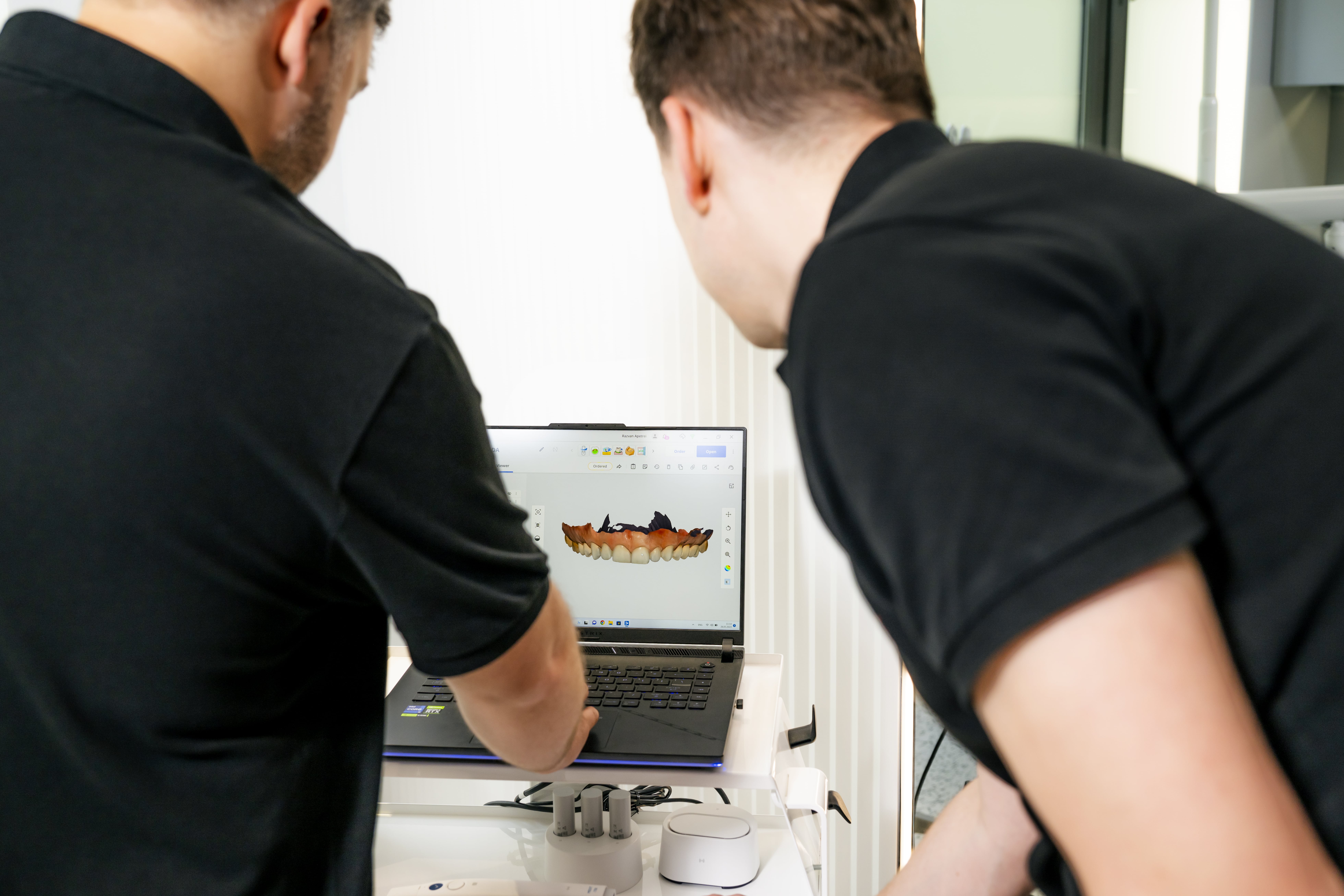 Fotografii intraorale: Adesea se realizează fotografii pentru a documenta starea inițială și pentru a planifica cu precizie modelarea gingivală.